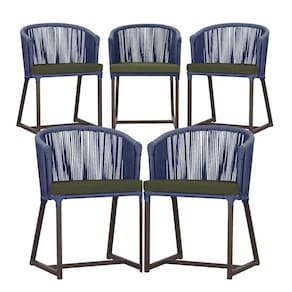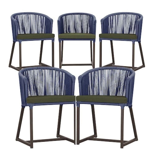 5 Cadeiras De Jantar Noronha Marrom Corda Náutica E13 Trama Azul