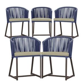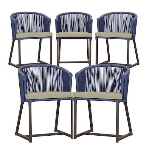 5 Cadeiras De Jantar Noronha Marrom Corda Náutica E7 Trama Azul
