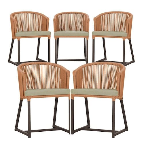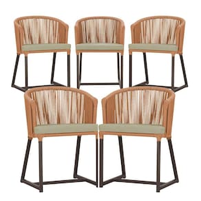 5 Cadeiras De Jantar Noronha Marrom Corda Náutica E7 Trama Terra Cota