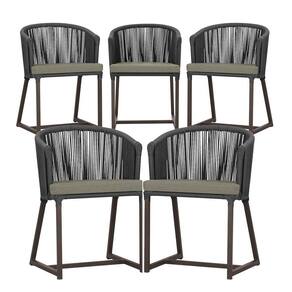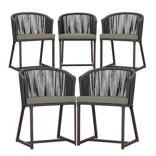 5 Cadeiras De Jantar Noronha Marrom Corda Náutica E8 Trama Preto