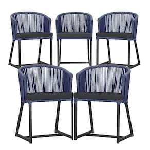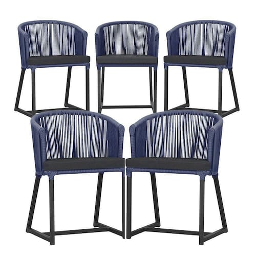 5 Cadeiras De Jantar Noronha Preta Corda Náutica E11 Trama Azul