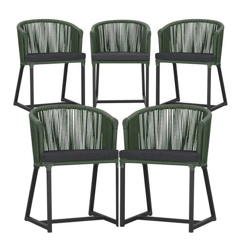 5 Cadeiras De Jantar Noronha Preta Corda Náutica E11 Trama Verde