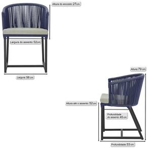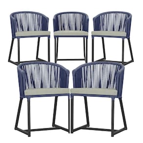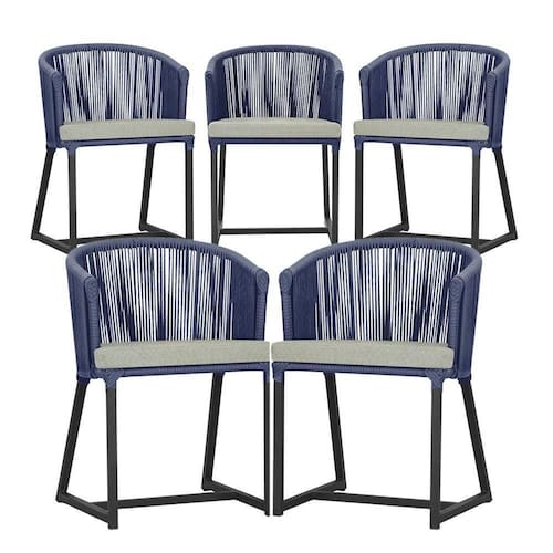 5 Cadeiras De Jantar Noronha Preta Corda Náutica E3 Trama Azul