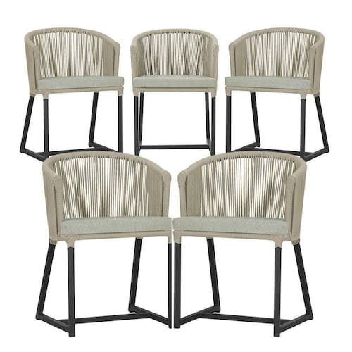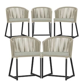 5 Cadeiras De Jantar Noronha Preta Corda Náutica E3 Trama Rami