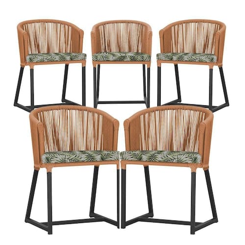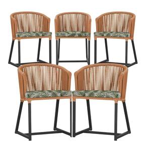 5 Cadeiras De Jantar Noronha Preta Corda Náutica E5 Trama Terra Cota