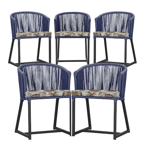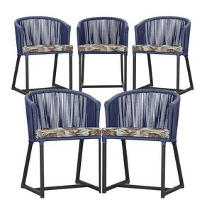 5 Cadeiras De Jantar Noronha Preta Corda Náutica E6 Trama Azul