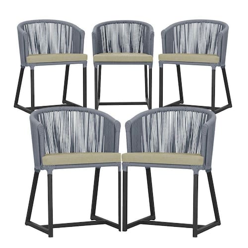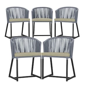 5 Cadeiras De Jantar Noronha Preta Corda Náutica E7 Trama Prata