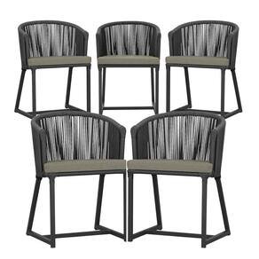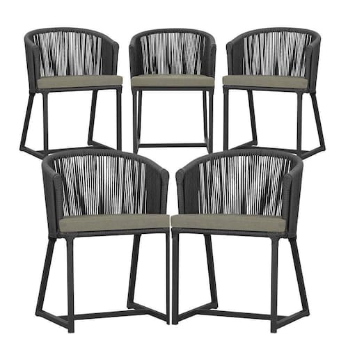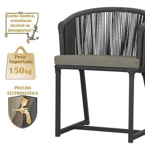 5 Cadeiras De Jantar Noronha Preta Corda Náutica E8 Trama Preto
