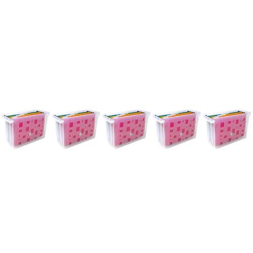 Detalhes dos produto: - A caixa para arquivo transparente possui alças laterais e estrutura vazada; - As pastas suspensas plastificadas possuem fundo branco e hastes plásticas; - As cores das pastas são diversas, sem opção de escolha; - Cada caixa para arquivo comporta até 12 pastas suspensas; - As pastas comportam folhas de tamanho A4; - Não possui tampa.