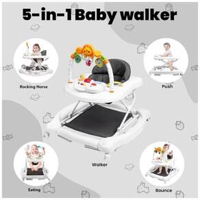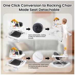 5in1 Baby Walker Design The Walker for Babies tem 5 modos caminham, segurança, balanço, empurrar, comer Mãe pode fazer o modo de escolha de acordo com o seu bebê precisa O bebê Walker atende às necessidades do bebê em todas as etapas de 6 meses a 18 meses de altura ajustável que os caminhantes para meninas têm 3 posições de altura ajustável, o que permite que você mantenha seu bebê facilmente na altura certa à medida que crescem A capa de assento respirável deixará seu bebê aproveitar a experiência confortável A atividade Walker é perfeita para a atividade de bebê segura para bebês Walker Nossos caminhantes para meninos atendem aos padrões de segurança para proporcionar ao seu bebê uma experiência mais segura enquanto aprende a andar Design triangular com chassi aumentado para mais estabilidade E seis almofadas separadas para evitar escorregar na primeira escolha do infantil Walker, a combinação de Baby Walker e Bouncer vem com música e brinquedos, o que ajudará a estimular os sentidos de seus filhos e acelerar seu desenvolvimento inicial E, ao mesmo tempo Walker ideal para menino 612 meses, Walker ideal para a menina 612 meses Fácil de montar dobrável O Walker dobrável é fácil de montar, você pode dobrar o Baby Walker com rodas e sede bebê em apenas alguns passos e andador para a menina lata ser armazenado em cama ou sofá sem ocupar muito espaço O design compacto e dobrável torna este Walker Baby Ajustável portátil fácil de realizar a qualquer hora e em qualquer lugar
