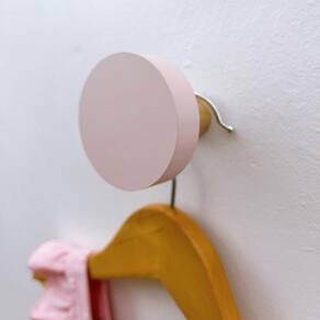 A face vai colada com super cola e acaba sendo apenas decorativa, pois é o suporte quem recebe o esforço, suportando até 5 Kg. Anúncio se refere à 5 unidades; Modelo: Bola; Tamanho de face: 6,0 cm; Material: MDF laminado 15mm melamínico Cor: Rosa bebê (rosê nude, rosinha, rosa milkshake)
