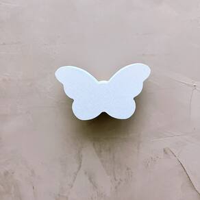 A face vai colada com super cola e acaba sendo apenas decorativa, pois é o suporte quem recebe o esforço, suportando até 5 Kg. Anúncio referênte à 5 unidades. Modelo: Borboleta Tamanho da face: 6,0cm X 4,0cm; Material: MDF laminado 15mm melamínico | borda cru Cor: Rosa, Azul, Branco e Cinza