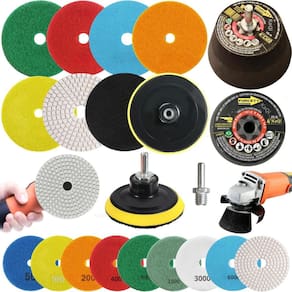 5 Lixas Grão 4 Pol. 100mm Diamantada + 1 Rebolo Cônico 45 Graus + 1 Disco Prato + 1 Pino M14 KaQi GRÃO: 50-50-50-200-200 Kit 5 Lixas Diamantadas Disco 4 Polegadas 100mm KaQi + 1 Rebolo Grão 120 Copo Cônico 45 Graus 4 Polegadas M14 Forcety. + 1 Suporte Prato Disco 100mm M14 KaQi + 1 Pino Adaptador Multiuso Rosca Universal M14 KaQi. Para Desbastes, Polimentos, Acabamentos, Boleamentos, Lixamentos a Seco e Úmido. Ideal para profissionais e entusiastas de reformas e construção. Transforme o acabamento das suas superfícies com o Kit 5 Lixas Grão 4 Pol. 100mm Diamantada + 1 Rebolo Cônico 45 Graus + 1 Disco Prato + 1 Pino M14 Desenvolvido para oferecer o melhor polimento e acabamento, é perfeito para quem busca resultados profissionais, tanto em pedras como granitos, mármores, cerâmicas, quanto ardósia, calcário, dekton, quartzo, porcelanato, pedra projetada, concreto, nanoglass, super nano, vidro e muito mais. Seu lixamento pode ser a seco e a úmido, o que proporciona um processo mais rápido, sem gerar calor excessivo. Assim, é possível garantir um resultado sem manchas ou falhas, e ainda favorece um efeito brilho d'água incrível O Rebolo Copo Cônico 10x5cm Grão 120 Forcety é ideal para desbastes, retificações, boleamentos e acabamentos. Projetado para oferecer eficiência, durabilidade, confiabilidade e resultados excepcionais, é perfeito para profissionais e entusiastas de reformas e construções. Não à toa, é o rebolo número 1 das marmorarias, azulejistas e oficinas de todo Brasil O Disco 100mm e o pino adaptador M14 podem ser utilizados em conjunto com as lixas e com o rebolo. Com sistema de gruda e desgruda fácil, podem utilizadas em lixadeiras, esmerilhadeiras, politrizes, furadeiras, parafusadeiras. Permite, assim, ampliar a gama de usos do kit. Principais características: 1. Durabilidade extra, alta resistência ao desgaste, longa vida útil e desempenho, além de excelente performance em diversos tipos de materiais. 2. Acabamento impecável no desbaste e polimento de superfícies de pedra, mármore, calcário, ardósia, porcelanato e outros, sem deixar manchas ou marcas indesejadas. Pode ser trabalhada em superfícies claras ou escuras. Oferece uma remoção eficiente de material e um acabamento uniforme. 3. Versatilidade no uso com diversas ferramentas, já que pode ser Utilizado em esmerilhadeiras, lixadeiras, politrizes e furadeiras elétricas. 4. Eficiência de montagem, uma vez que possui sistema de fixação rápido. Basta encostar a lixa no suporte do disco para grudar, e, para remover, é só puxar na direção contrária. Conteúdo da embalagem: 5 Lixas DÁgua 4 Pol. 100mm Disco Diamantado KaQi GRÃO. + 1 Rebolo Grão 120 Copo Cônico 45 Graus 4 Polegadas M14 Forcety. + 1 Suporte Prato Disco 100mm M14 KaQi + 1 Pino Adaptador Multiuso Rosca Universal M14 KaQi. Especificações Lixas: Diâmetro: 100mm 4 Polegadas . Furo central: 1,3cm diâmetro. Espessura 1 unidade: 0,4cm. Maleabilidade: flexível. Lixamentos: seco e úmido. RPM: ideal entre 3000 a 5000 rotações por minuto. Material da lixa: diamante sintético industrial e resina premium. Costado: tipo vellcro. Fácil de fixar e remover. Especificações Rebolo: Trabalho: a seco ou refrigerado com água. Diâmetro: 4 Polegadas 100mm 10,16cm x altura 5,08cm. Velocidade: 9023RPM. Rosca: M14. Material: Carbeto de Silício SiC com diamantes. Norma ABNT NBR 15230. Especificações Prato Suporte: Diâmetro do disco: 100mm 4 Polegadas . Modelo do disco: M14 com superfície tipo vellcro. RPM: até 12000. Rosca: padrão M14 14mm . Especificações Pino Adaptador M14: Para Furadeira Parafusadeiras, Politrizes, Lixadeiras e Esmerilhadeiras. Fixa em discos pratos M14 para uso com lixas, boinas, espumas de polir, entre outros acessórios. Rosca: M14 14mm . Pino largura: 8mm. Altura total: 4,4cm.