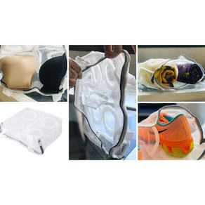 - Tem esponja interna que proteje o calçado, tênis e as roupas delicadas, tais como sutiã com bojo, roupas de bebê, biquinis de praia com bojo, peças com pedrarias;