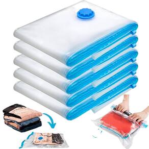 O saco a vácuo é uma solução simples, eficaz e acessível para quem quer economizar espaço e proteger roupas, cobertores e edredons contra poeira, insetos e odores. Ao retirar o ar de dentro do saco, você reduz o volume das peças em até 75%, deixando tudo muito mais compacto, organizado e fácil de guardar. E o melhor: não precisa de aspirador de pó! A bomba manual permite que qualquer pessoa use o produto em segundos, de forma prática e eficiente, até mesmo em viagens. Com material resistente, reutilizável e lacre hermético, seus itens ficam protegidos da umidade, mofo e cheiro de guardado, por muito mais tempo. Ideal para quem tem pouco espaço, quer viajar com a mala organizada ou guardar roupas de inverno sem preocupação. Com o kit com 5 unidades e bomba de ar, organizar a casa ficou mais fácil do que nunca.