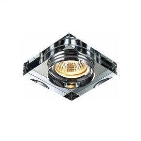 - Material: Cristal espelhado transparente e metal cromado - Dimensões: L 8,9 cm x C 8,9 cm A 2 cm - Recorte no teto :7x7 - Quantidade de lâmpadas: 01 - Bocal: GU10 - Modelo da lâmpada: MR16 - Potência máxima: 50W