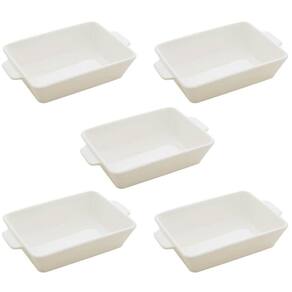5 Travessas com Alças Assadeiras de Porcelana Branca 1L Basic Lyor Restaurante Buffet.