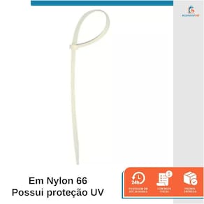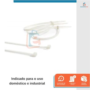 A Abraçadeira Nylon é ideal para o uso doméstico e industrial; prender fios, cabos, mangueiras, fixação de chicotes, lacre de embalagens, cabos de redes e outros. Fabricada em nylon é resistente à água e óleo, temperatura, intempéries climáticas e estabilidade dimensional mesmo sob o efeito do calor.CARACTERÍSTICAS TÉCNICAS:Material: Nylon 6.6Medidas: 350mm (comprimento) x 7,6mm (largura)Temperaturas de utilização: -40ºC a 85ºCQuantidade: 50 unidadesMarca: StarferRef.: 1010786