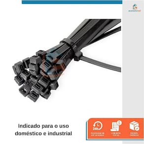 A Abraçadeira Nylon é ideal para o uso doméstico e industrial; prender fios, cabos, mangueiras, fixação de chicotes, lacre de embalagens, cabos de redes e outros. Fabricada em nylon é resistente à água e óleo, temperatura, intempéries climáticas e estabilidade dimensional mesmo sob o efeito do calor.