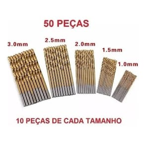 50 brocas de titânio para madeira alumínio plastico 1mm à 3mm Kit 50 brocas titanium Madeira alumínio plástico