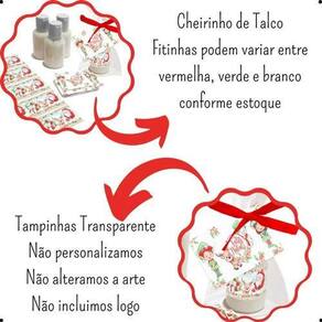 50 Frascos de Hidratante 30ml: Frascos transparentes, cheios de hidratante, com tampas também transparentes. 50 Etiquetas: Cada frasco acompanha uma etiqueta temática de Natal, agregando valor e exclusividade às lembrancinhas. 50 Tags com Furo: Tags decorativas de Natal, que personalizam ainda mais suas lembranças. 50 Fitas de Cetim: Fitas em cores natalinas para fechar os saquinhos de celofane. 50 Saquinhos de Celofane Transparente: Embalagens práticas e transparentes, criando uma apresentação sofisticada. As garrafinhas já vêm cheias, e os rótulos, tags, saquinhos e fitas são enviados separadamente. Escolha a arte e o aroma no momento da compra. Após o pedido, não será possível alterar a opção selecionada.