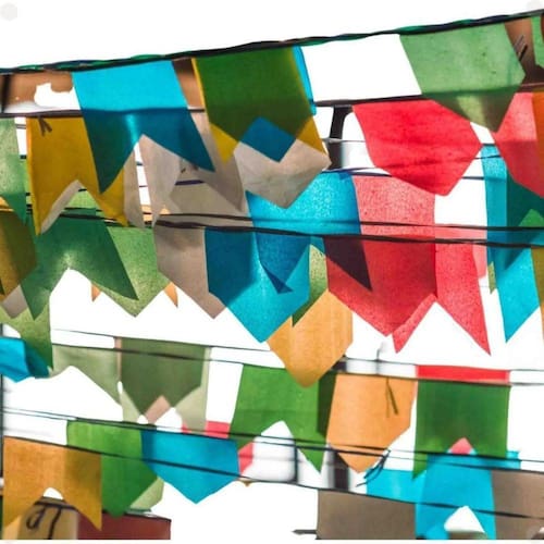 Decore a sua Festa Junina com a Bandeirinha Plástico Festa Junina Bandeirola Com um total de 50 metros de comprimento, este produto é perfeito para decorar qualquer espaço, grande ou pequeno, e trazer o espírito festivo para o seu evento.
