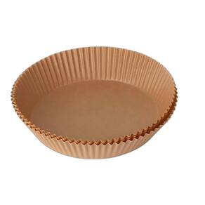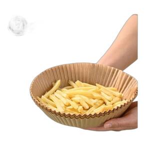 Forro de papel especial para air fryer, absorve gordura, material saudável, suporta até 200°C, não afeta o sabor do alimento, formato redondo, cor marrom.Tipo