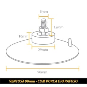 Ventosa fabricada em PVC Preto Para sua remoção, basta puxá-la pela aba lateral. Com parafuso e porca. Ideal para martelinho de ouro, displays para retirada de tela de TV, utilidades domésticas diversas (fixar em locais lisos como vidro, azulejo). Marca: H Plásticos