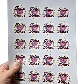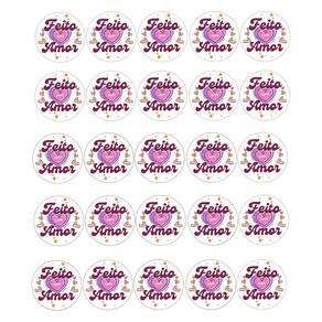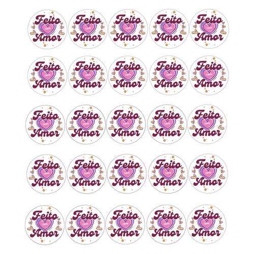 500 Adesivos Vinil Para Embalaguem Frase Feito c/ Amor 4,5cm