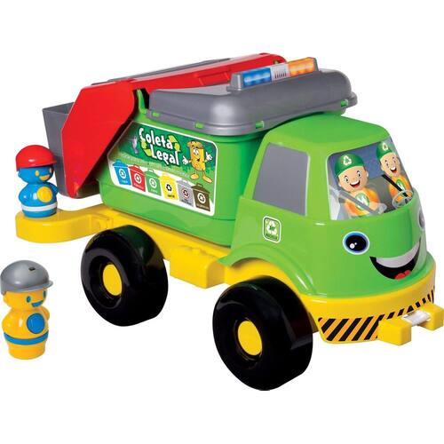 Caminhão Coleta Seletiva - Merco Toys Material: Polipropileno e Polietileno. O Caminhão coleta seletiva Merco Toys possui caçamba com múltiplas funções, módulo com 4 toques diferentes de sirene, portas traseiras que se abrem, e acompanha mais 2 bonecos divertidos. Alça para puxar está embutida no chassi. Ref: 518. Simpático e divertido, a criançada vai fazer a maior festa brincando e aprendendo com o Caminhão Coleta Seletiva Merco Toys. Esse lindo produto é ideal para a diversão e o aprendizado de seu filho. Estimula a coordenação motora, percepção de cores e formas, e criatividade. Medidas do Caminhão coleta seletiva: (CxAxL) 57x31x29 cm Embalagem: plástica com solapa. Idade: a partir de 1 ano.