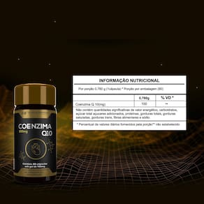 Suplemento alimentar de coenzima q10 em cápsulas.