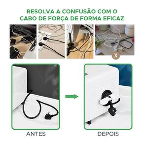Produto inovador que permite enrolar e fixar os fios e cabos de forma simples e rápida. O produto é feito de abs, um material resistente e durável, e tem um adesivo forte que não deixa marcas. O design é discreto e moderno, combinando com qualquer ambiente.