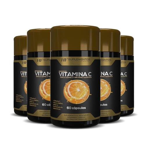 Através deste anúncio, você está adquirindo 5 cinco potes de 5x vitamina c premium 60 caps hf suplementos.