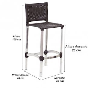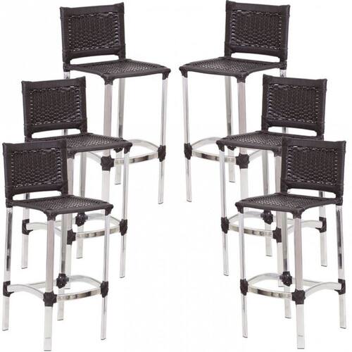 6 Banquetas Madri em Alumínio Edícula Cozinha Balcão Área Trama - Marrom Escuro