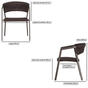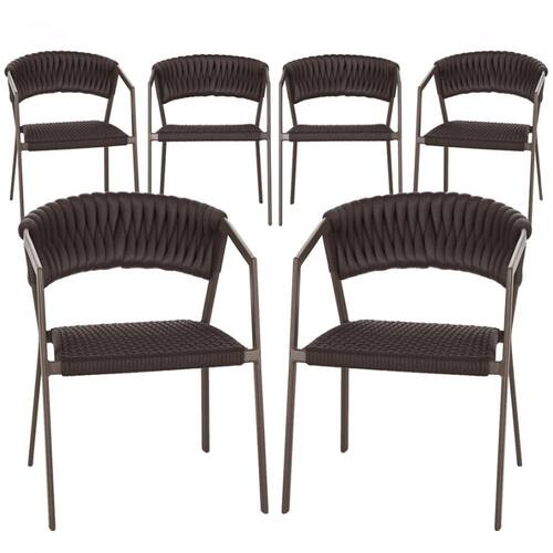 6 Cadeiras Atenas Tricô Náutico e Alumínio com Proteção UV para Varanda, Cozinha, Área, Jardim - Pintura Marrom