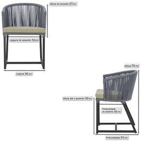 Combinando estilo e resistência, esta cadeira traz o melhor do design contemporâneo em alumínio com micro pintura e acabamento em corda náutica. O estofado impermeável completa o conforto e a funcionalidade, tornando-a ideal para ambientes externos e internos.
