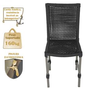 6 Cadeiras de Jantar Cannes de Alumínio e Trama Tela de Corda Náutica - Preto