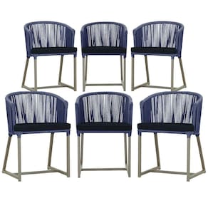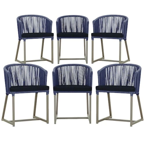 6 Cadeiras De Jantar Noronha Fendi Corda Náutica E12 Trama Azul