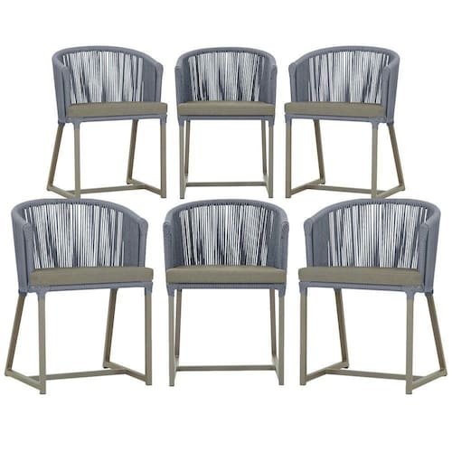 6 Cadeiras De Jantar Noronha Fendi Corda Náutica E8 Trama Prata