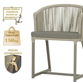 Descubra a Elegancia e Durabilidade da Cadeira Noronha. Combinando estilo e resistencia, esta cadeira traz o melhor do design contemporaneo em aluminio com micro pintura e acabamento em corda nautica. O estofado impermeavel completa o conforto e a funcionalidade, tornando-a ideal para ambientes externos e internos. Qualidade e elegancia que transformam qualquer espaco. Adicione um toque de sofisticacao e conforto ao seu espaco com a cadeira Noronha.