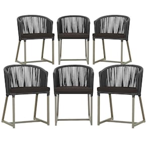 6 Cadeiras De Jantar Noronha Fendi Corda Náutica E9 Trama Preto