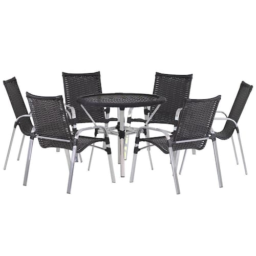 6 Cadeiras Emily e Mesa Adaptada em Alumínio com Tampo Trama - Marrom