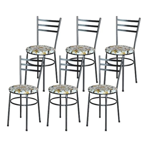 6 Cadeiras Epoxi Preta Craqueada Para Cozinha Assento Floral Cor:floral Orquídea