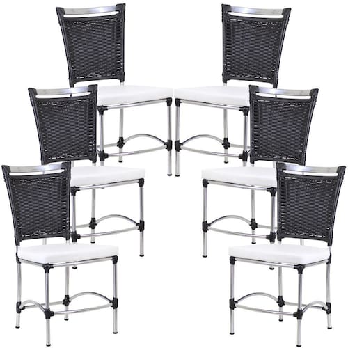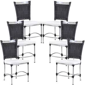 6 Cadeiras JK em Alumínio e Fibra Sintética e Assento Impermeável - Trama - Preto