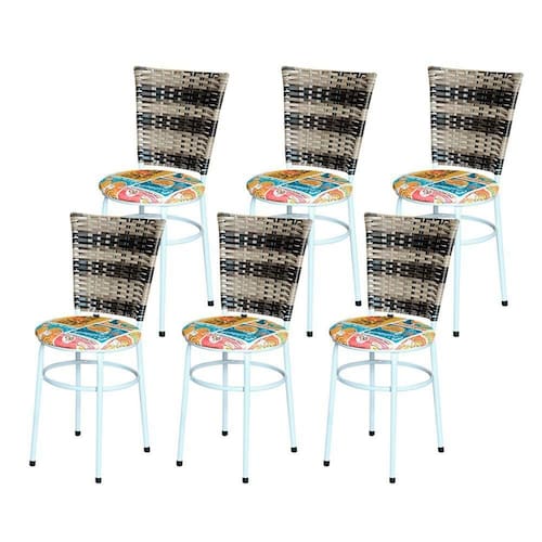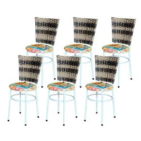 6 Cadeiras Para Mesa Branca Hawai Cappuccino Premium Assento Floral Cor:happy Hour