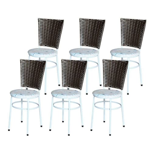 6 Cadeiras Para Mesa Branca Hawai Marrom Assento Floral Cor:floral Areia