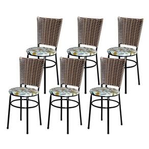 6 Cadeiras Para Mesa Preta Hawai Avelã Assento Floral Orquídea