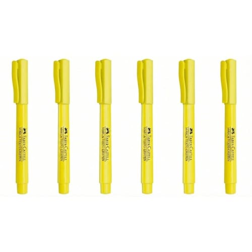 MARCA TEXTO AMARELO FLUORESCENTE FABER-CASTELL – KIT COM 6 UNIDADES (REF. MT-AMZF) O Marca Texto Faber-Castell é indicado para destacar informações em textos impressos ou escritos à mão, auxiliando na organização e na leitura de conteúdos. Possui tinta fluorescente na cor amarela, que proporciona boa visualização sem comprometer a legibilidade do texto. A embalagem contém 6 unidades, sendo uma opção prática para uso frequente em atividades de leitura, estudos e organização de materiais. CARACTERÍSTICAS DO PRODUTOMarca: Faber-Castell Modelo/Referência: MT-AMZF Tipo: Marca texto Cor da tinta: Amarelo fluorescente Quantidade: Kit com 6 unidades Corpo em formato confortável para manuseio Tampa com encaixe seguro INDICAÇÃO DE USODestaque de textos em livros, cadernos e apostilas Organização de estudos e leituras Uso em casa, escola ou ambientes de estudo