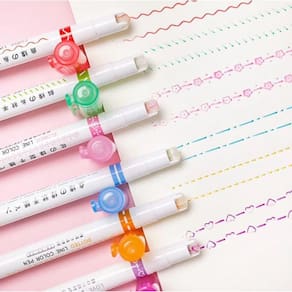 Pacote: Contém 6 unidades de canetas roller com carimbo integrado. Tinta da Caneta: Tinta de secagem rápida, evitando borrões e garantindo uma escrita limpa e uniforme. Carimbo: Carimbo integrado na tampa da caneta, disponível em várias estampas ou mensagens personalizáveis. Design: Corpo ergonômico e leve, proporcionando conforto durante o uso prolongado.
