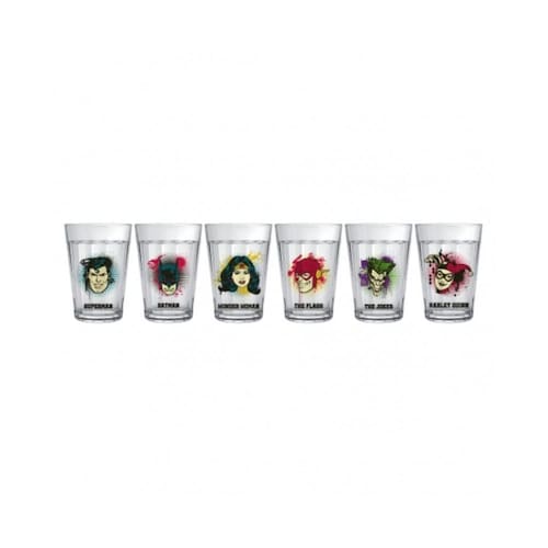 Coleção inspirada nos personagens do Universo DC. Produto produzido em vidro incolor e estampado com personagens da DC.
